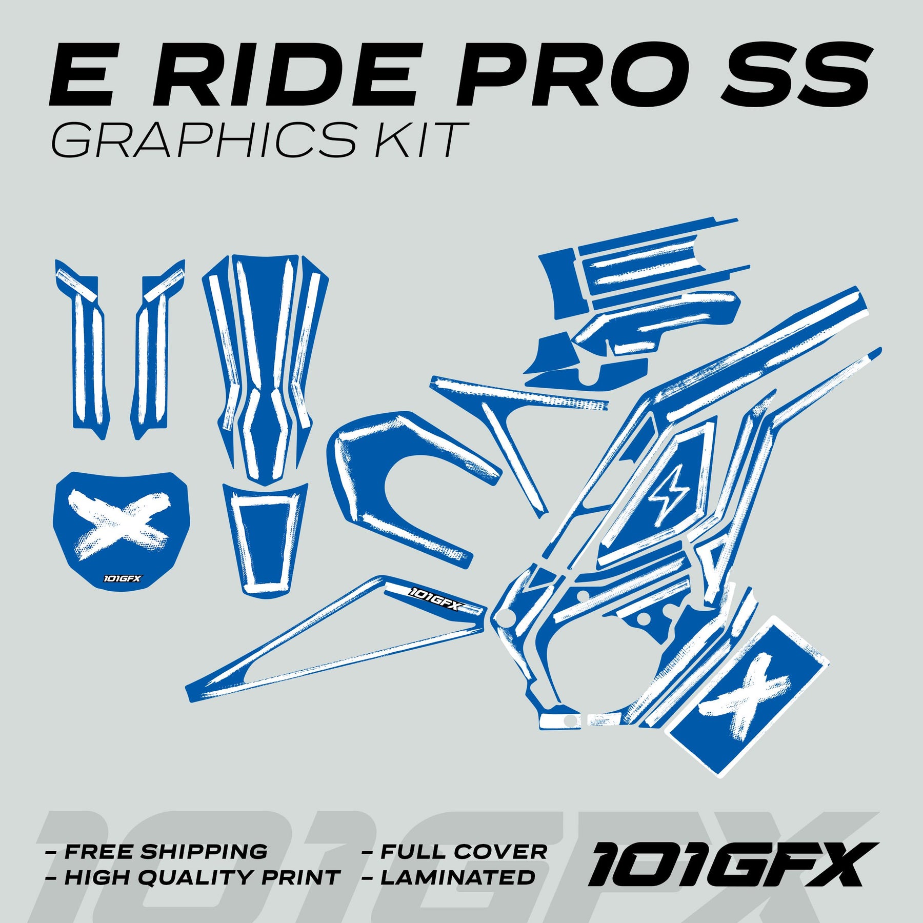 Transformez votre véhicule dès aujourd'hui avec le kit graphique E Ride Pro SS BRUSH Bleu Blanc et profitez d'une alliance parfaite entre design et fonctionnalité. N'attendez plus ! Ajoutez ce kit attrayant à votre panier et sublimez la décoration de votre véhicule dès maintenant !